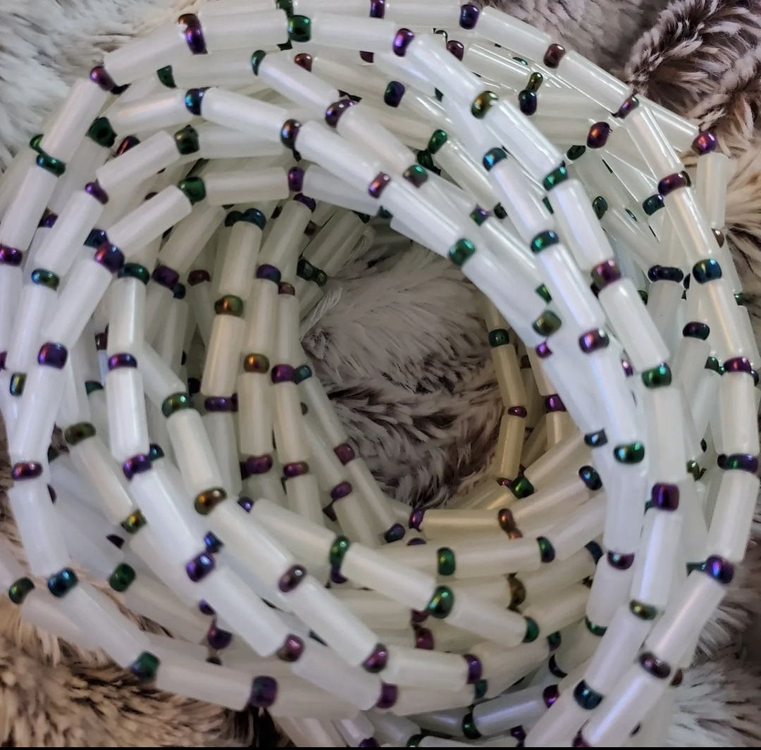 Glow in the dark traditional tie on waist beads. Approximately 47in.